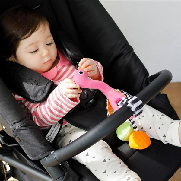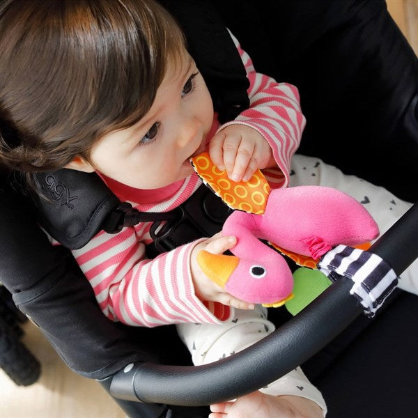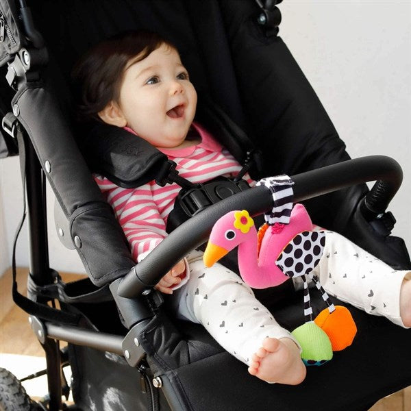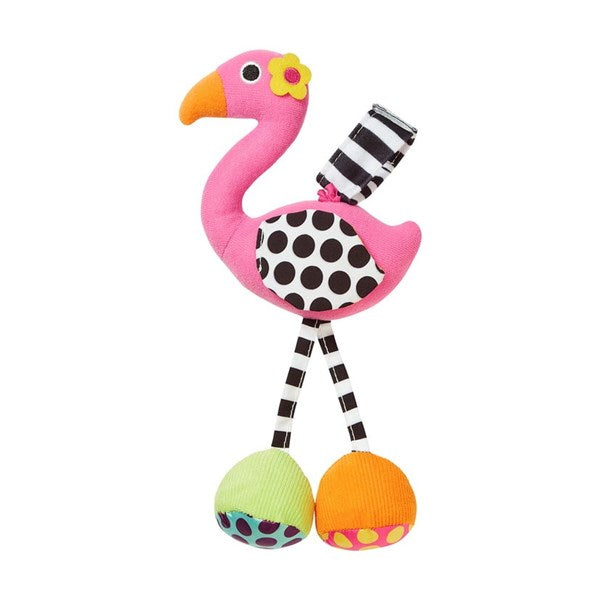 Sassyのキャラクターがジッタートイとして新登場!キャラクターを下に引っ張るとぶるぶると震えて、赤ちゃんの好きな音や触感などをたくさんのしかけで楽しめます。 ベビーカーやバッグに取り付けて。
