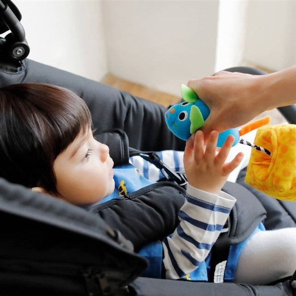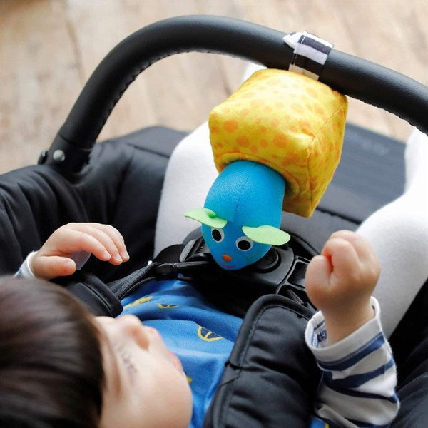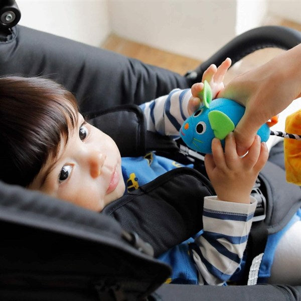 Sassyのキャラクターがジッタートイとして新登場!キャラクターを下に引っ張るとぶるぶると震えて、赤ちゃんの好きな音や触感などをたくさんのしかけで楽しめます。 ベビーカーやバッグに取り付けて。
