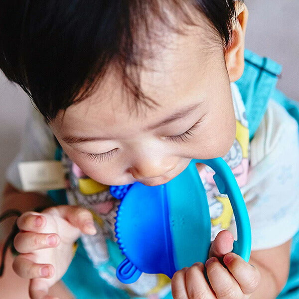 赤ちゃんの噛む感覚を養うために、複数の機能を備えています。様々な凹凸で食べ物を噛む感覚を経験でき、安全で柔らかいシリコーンの丸い形状は、赤ちゃんの小さな手で持ちやすいように設計されています。BPAおよびフタル酸フリーの素材で作られています。