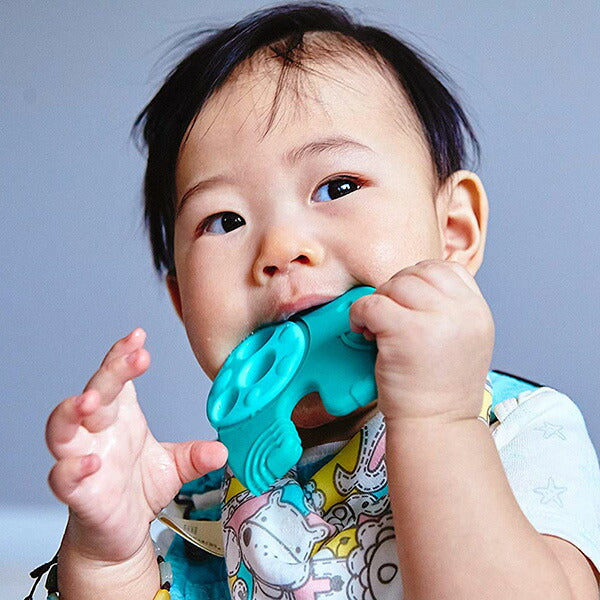 赤ちゃんの噛む感覚を養うために、複数の機能を備えています。様々な凹凸で食べ物を噛む感覚を経験でき、安全で柔らかいシリコーンの丸い形状は、赤ちゃんの小さな手で持ちやすいように設計されています。BPAおよびフタル酸フリーの素材で作られています。