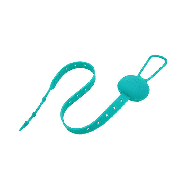 ストローボトルやおもちゃ、おしゃぶり、カトラリーなど手から落としてしまいがちなアイテムをしっかりホールド!20個の穴が空いているので、くくっておきたいアイテムによって幅広く調節できます。ストラップ部分をコンパクトに収納することができます。シリコンなのですべりにくく、汚れた時はしっかり水洗いができます。アウトドアにも便利!