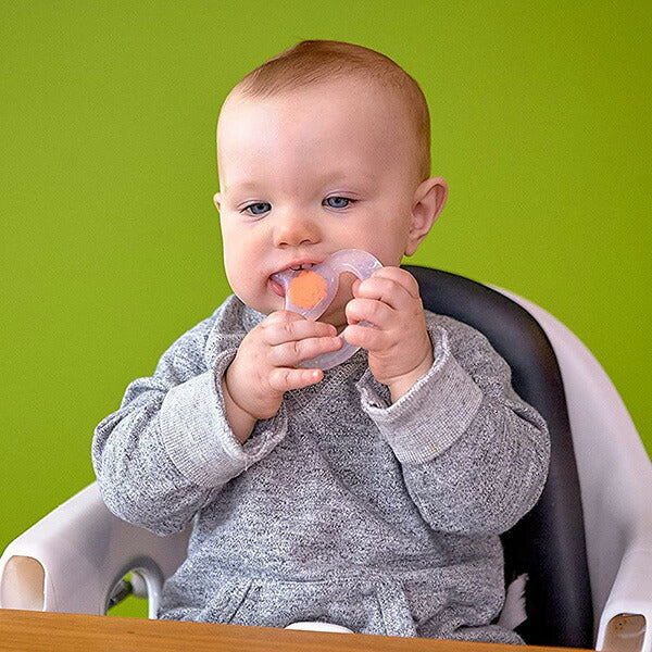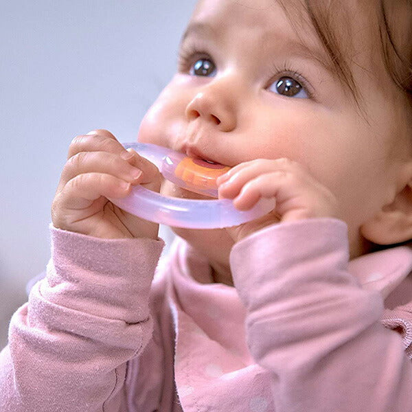 シリコン製の柔らかいブラシが赤ちゃんの歯茎を優しくマッサージします。