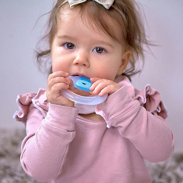 シリコン製の柔らかいブラシが赤ちゃんの歯茎を優しくマッサージします。