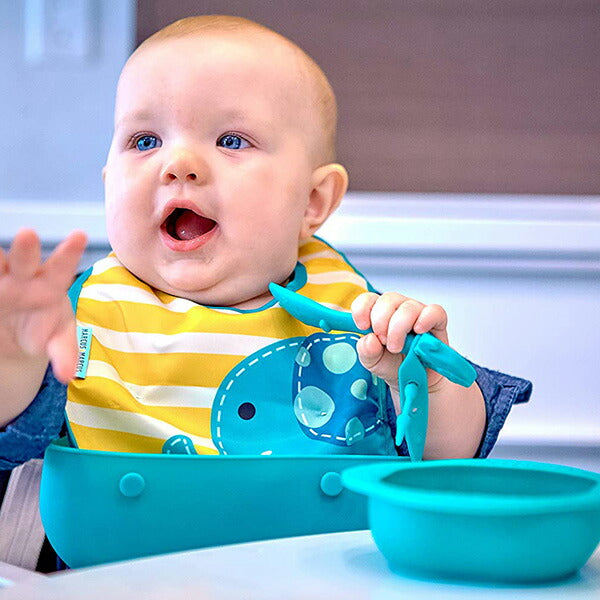 お出かけにも使える!ビブ・サクションボウル・スプーンの3点セット。