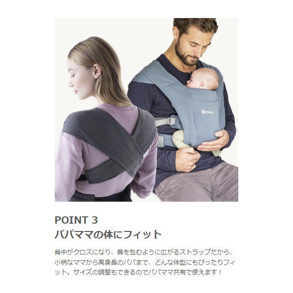 新生児期やおうちでの抱っこにオススメな抱っこひも、EMBRACEに待望のメッシュが登場。やわらかく体にフィットするSoft Airメッシュ生地で、お子さまもパパママも心地よい抱っこができます。ウエストとサイドのバックルを留めるだけのシンプルな作りで、はじめての抱っこやお家での使用にオススメ。長時間の抱っこに向いているOMNI Breeze / ADAPT SoftFLexとの使い分けで、育児がより快適に。