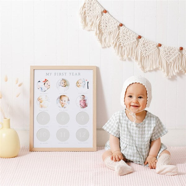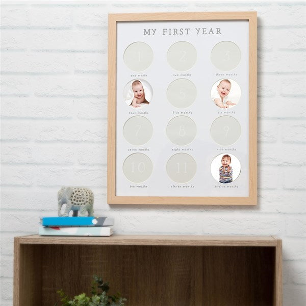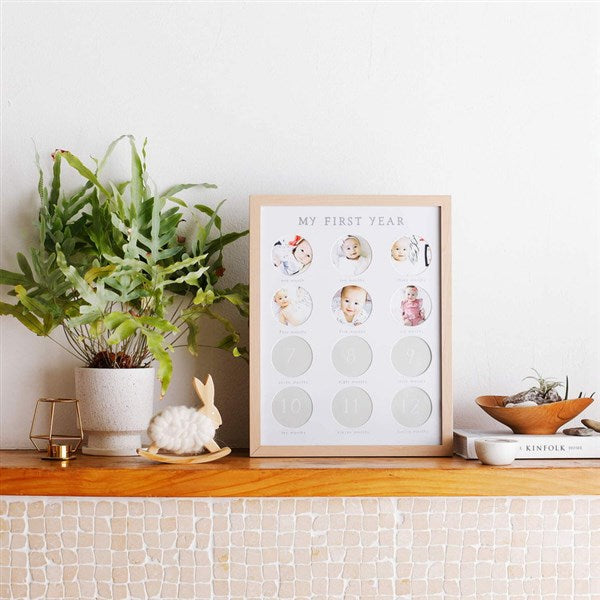 赤ちゃんの初めての1年ををかたちに残す、フォトフレーム。1年後に完成するフレームは、家族のとっておきの宝物に。ウッドデザインは、お部屋に飾っておくだけすてき空間を演出します。