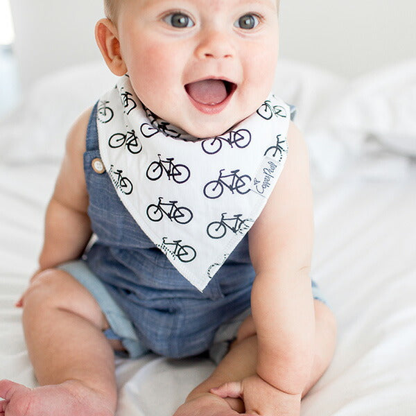 コッパーパールのビブセットの注目すべきは豊富な柄のバリエーションにあります。新作デザインが常に発売し続けられており、最新トレンドのデザインからお選びいただけます。多様な価値観をもつ社会を生きる現代のベビーにぴったりなお気に入りのデザインをきっとみつけられるはずです。