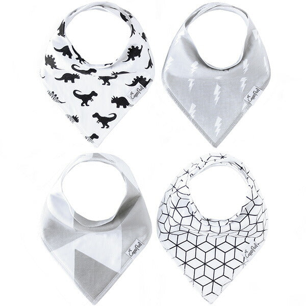 4枚セットになったバンダナビブは出産祝いに最適です。また、クリスマスやこどもの日にプレゼントすればベビーがもっとファッショナブルに!