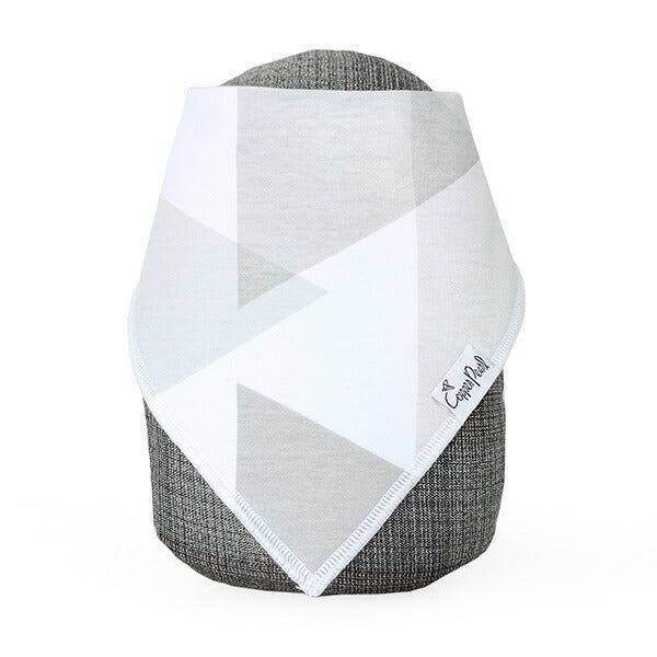 スタイリッシュなデザインの表地(綿)と吸水性と速乾性に優れた白い裏地(ポリエステル)の2枚仕立て。 表地がキャッチしたよだれの水分を裏地が吸い込み、毛細管現象によって素早く裏地の全面に広げます。それによって水分と空気が触れる面積を広くして速乾を実現。ポリエステルは毛細管現象による浸透速度が速いので、バンダナビブの裏地はいつもサラサラです。よだれの多いベビーでもお洋服が濡れにくいのはそのような仕組みなのです。