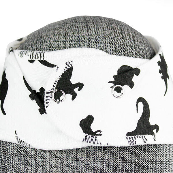 サイズ調節は左右に2つずつついたニッケルフリーのスナップ。このスナップは、ベビーにはなかなか外せませんが、大人には簡単に付け外しができます。