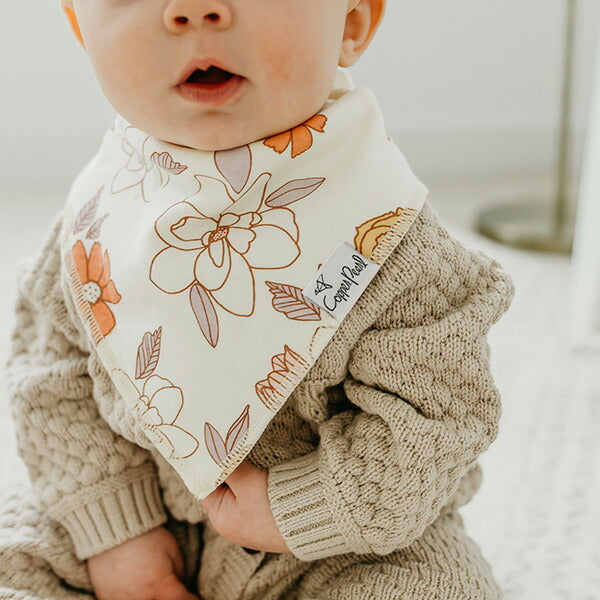 コッパーパールのビブセットの注目すべきは豊富な柄のバリエーションにあります。新作デザインが常に発売し続けられており、最新トレンドのデザインからお選びいただけます。多様な価値観をもつ社会を生きる現代のベビーにぴったりなお気に入りのデザインをきっとみつけられるはずです。