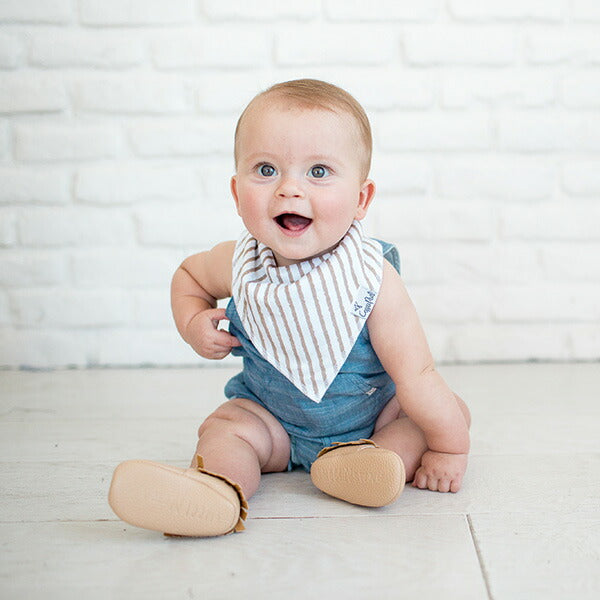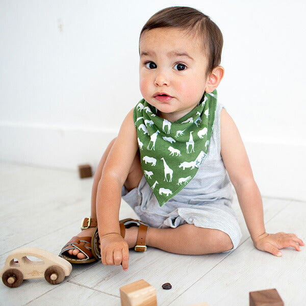 4枚セットになったバンダナビブは出産祝いに最適です。また、クリスマスやこどもの日にプレゼントすればベビーがもっとファッショナブルに!