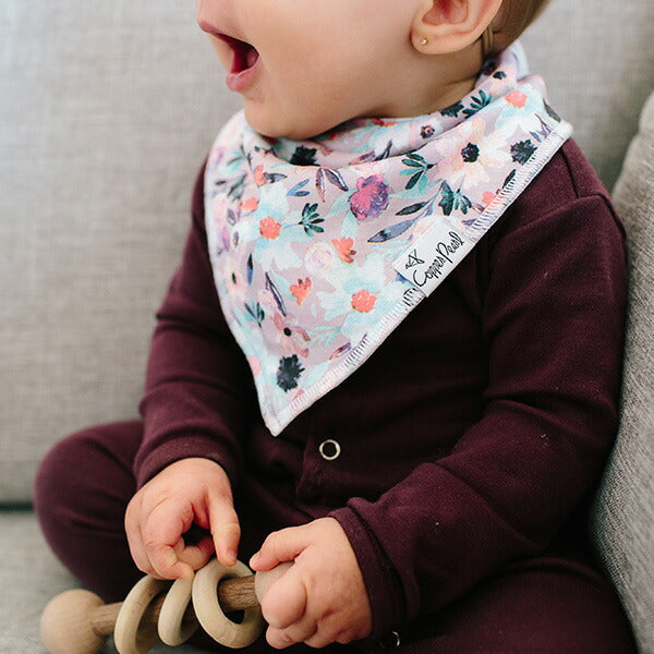 コッパーパールのビブセットの注目すべきは豊富な柄のバリエーションにあります。新作デザインが常に発売し続けられており、最新トレンドのデザインからお選びいただけます。多様な価値観をもつ社会を生きる現代のベビーにぴったりなお気に入りのデザインをきっとみつけられるはずです。