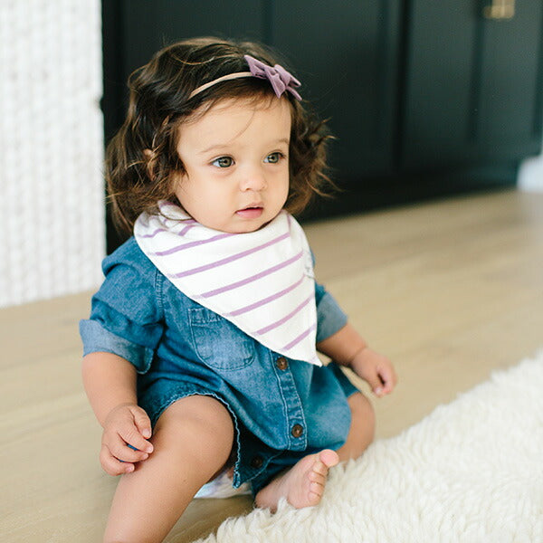 4枚セットになったバンダナビブは出産祝いに最適です。また、クリスマスやこどもの日にプレゼントすればベビーがもっとファッショナブルに!