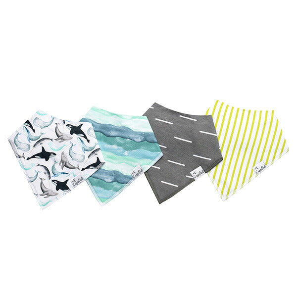 4枚セットになったバンダナビブは出産祝いに最適です。また、クリスマスやこどもの日にプレゼントすればベビーがもっとファッショナブルに!