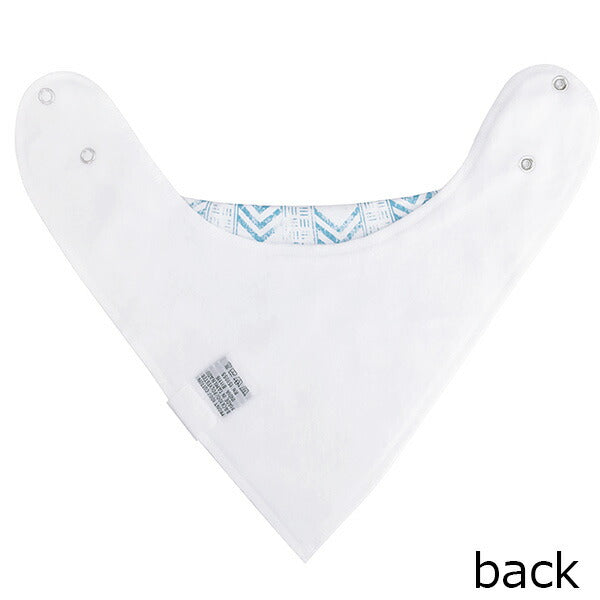 スタイリッシュなデザインの表地(綿)と吸水性と速乾性に優れた白い裏地(ポリエステル)の2枚仕立て。 表地がキャッチしたよだれの水分を裏地が吸い込み、毛細管現象によって素早く裏地の全面に広げます。それによって水分と空気が触れる面積を広くして速乾を実現。ポリエステルは毛細管現象による浸透速度が速いので、バンダナビブの裏地はいつもサラサラです。よだれの多いベビーでもお洋服が濡れにくいのはそのような仕組みなのです。