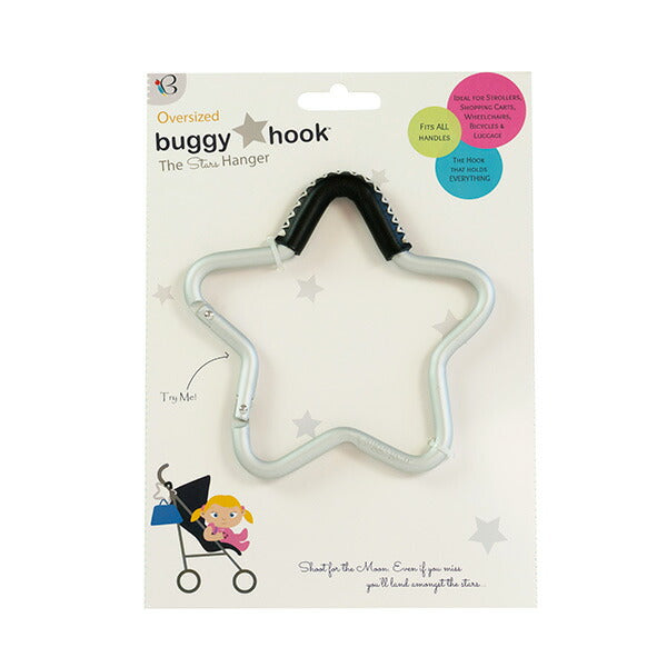 滑り止めのグリップにはフルグレイン牛皮を使用。クロスステッチが施され高級感におしゃれをプラスしています。たっぷりサイズで幅広な持ち手のママバッグも無理なく掛けられます。カラビナタイプで取り外しもらくらく!素材は軽くて丈夫なアルミニウム合金素材を使用。耐荷重20kgまでの丈夫さです。かわいいだけじゃなく、機能面でも頼りになるスターフックです。星型の大きなフックはさまざまなシーンで活躍してくれます。ベビーカー以外にも、ショッピングカート、自動車、自転車、スーツケース、荷物をまとめて持ち運ぶ時にも便利です。