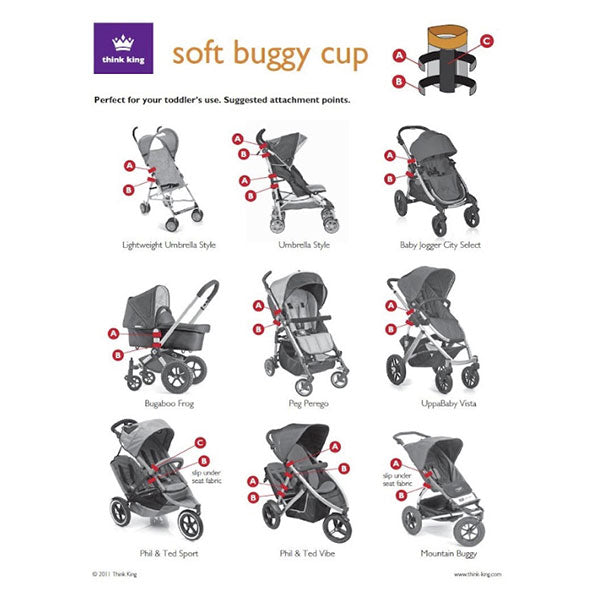 セレブ愛用のベビーカーフックブランド「think king(シィンキング)」から、いろいろな場所に取り付けできる柔らかな素材のボトルホルダー 「ソフトバギーカップ」が届きました。3つのベルクロで簡単に取り付けができ、ママ用のドリンクホルダーとして、またはお子様用のおもちゃ入れとしても使うことも!工夫次第で取り付けは自由自在だから、ベビーカーだけでなく車の中、自転車、バイク、キックボードや車いすにもお使いいただけます。折り畳める柔らかな素材なので、付けたままベビーカーを折り畳むことができるのも嬉しいポイント!柔らか素材でできた巾着型。直径10cmと大きめサイズ。ひもを引っ張って巾着袋のように使えるので落とす心配もありません。