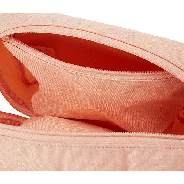 チャックを開けると2つのファスナーポケット付収納が付いているのでボディクリームやおしゃぶりなどの小物を収納できます。またかばんの両サイドにもゴムバンドと大きなポケットが付いているのでおむつやおしり拭きなども収納可能です。またお着替え用に、洗えるシートや汚れた服を収納できる巾着も付いています。