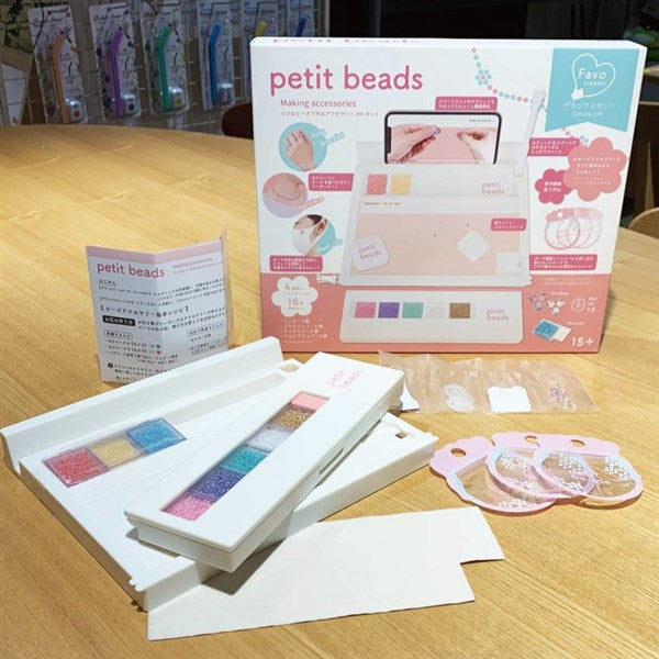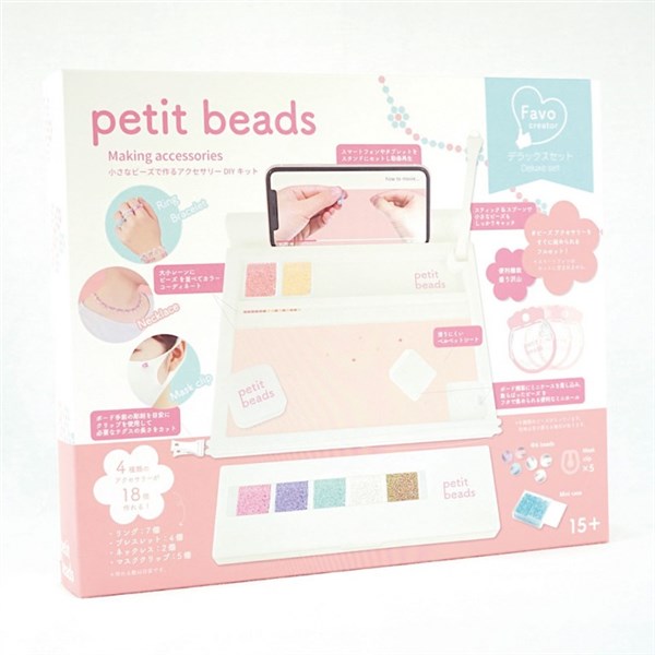 小さなビーズで作るアクセサリーDIYセット。 ありそうでなかったビーズアクセサリーが作れる、便利機能盛り沢山のワークキットの登場です!リングやブレスレット、ネックレスからマスククリップまで、4種類のアクセサリーが18個作れます。 ビーズアクセサリー作家しのはらみわさん監修レシピ付きで、初めての方も安心&小さなガラスビーズなので本格派にもおすすめ!あなただけのオリジナルアクセサリーを始めませんか?