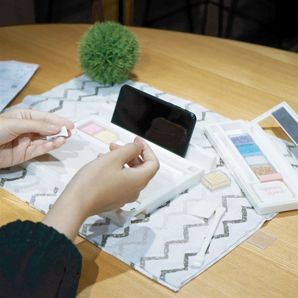 ワークボード・パレットケース・テグスホルダー・スティック:ABS ミニケース:MABS / スティック先端:シリコーン / テグス:ナイロン ビーズ:ガラス・アクリル / マスククリップ :PP テグス留めクリップ:鉄 / ベルベットシート:PE・PU ジッパー袋:PET・PP / 鏡:PC