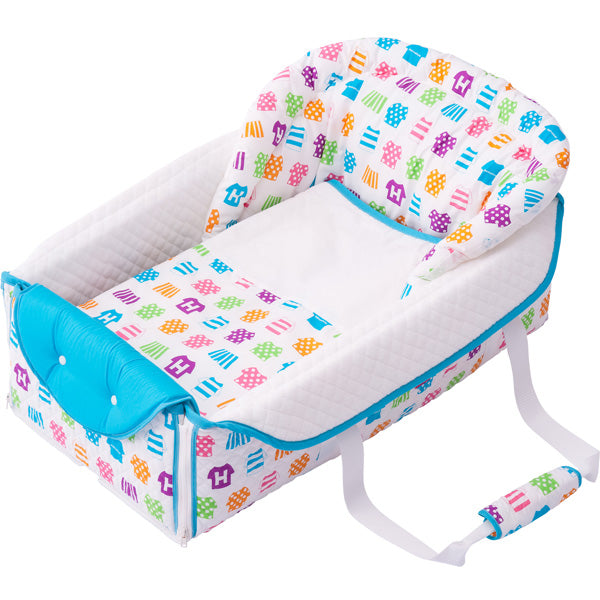赤ちゃんを寝かせておくクーファンとしてはもちろん、オムツ替え、お昼ねマット、プレイマット、バッグにと5通りに使えるマルチなアイテム家の中でももちろん、お出かけや帰省時に大活躍します。