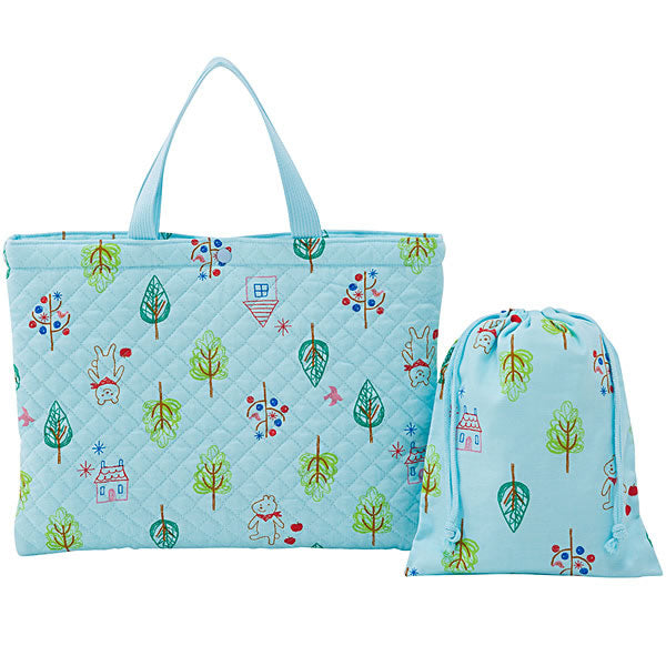 キルティング レッスンバッグ 巾着袋(小物入れ)付き フォレストフレンズ サックス フジキ 【手提げ お稽古 保育園 入園 小学校 小学生 ピアノ 習い事 日本製】【ゆうパケット送料無料】