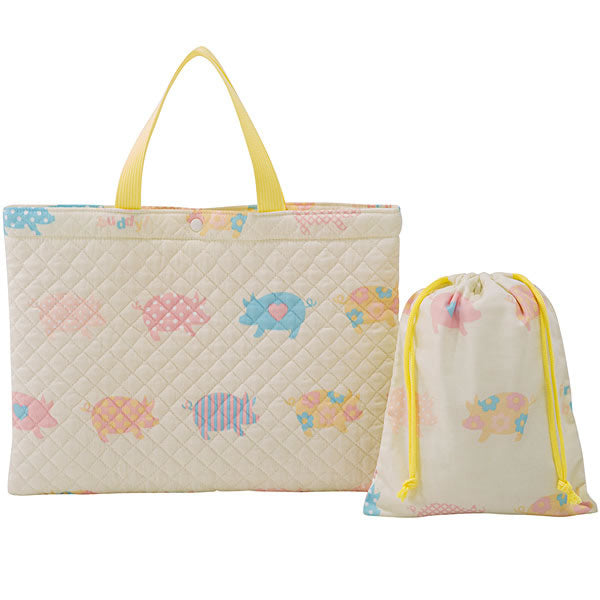 キルティング レッスンバッグ 巾着袋(小物入れ)付き フレンズバディ イエロー フジキ 【手提げ お稽古 保育園 入園 小学校 小学生 ピアノ 習い事 日本製】【ゆうパケット送料無料】