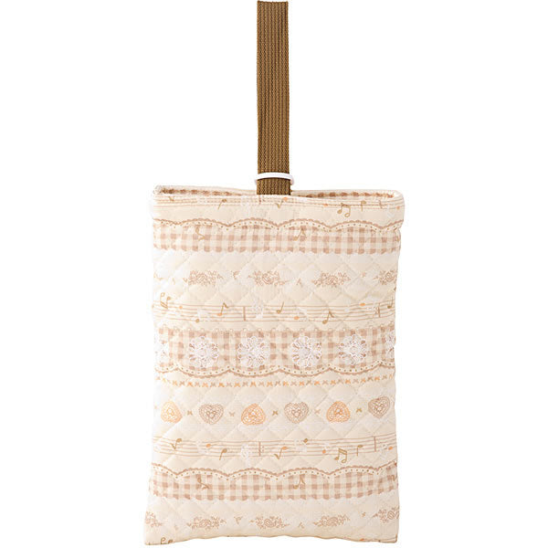 シューズケースは、キルティング仕様ですので、耐久性もあり又、シューズの出し入れも輪っかを通すだけなので、お子様にも使いやすく成っております。