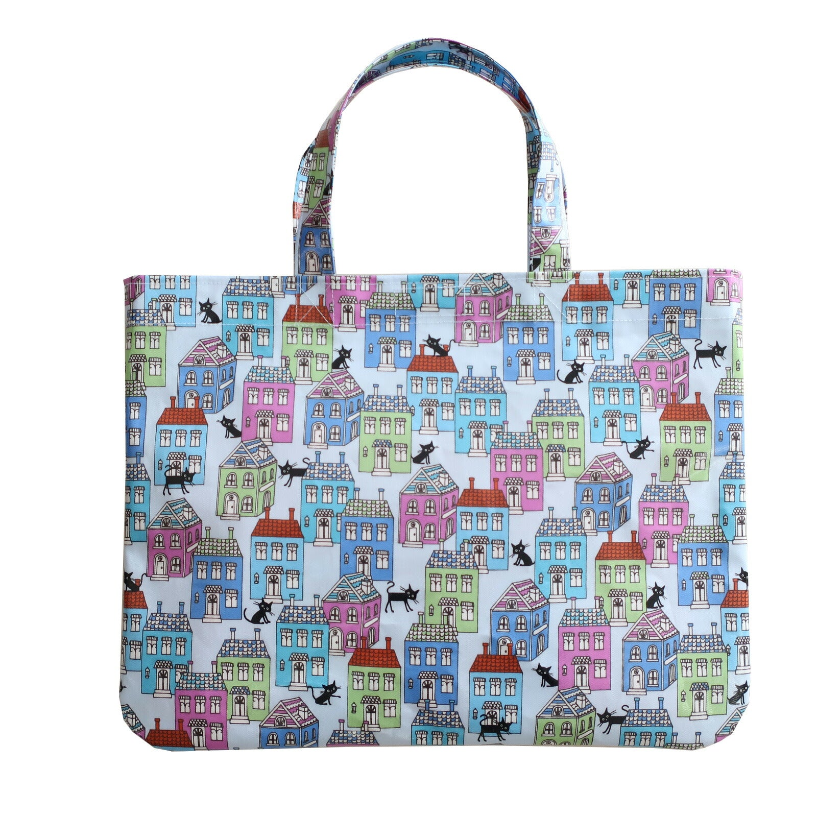 ラミネート加工(オレフィン系フィルム)を施したレッスンバッグです。雨に濡れたりしても、ハンカチや柔らかい布でさっと拭き取れます。内側には、内ポケット、名前の書けるネームタグが付いています。通園、通学はもちろんの事、ちょっとしたお出掛け、レッスンバッグなど様々な用途にお使い頂けます。バッグ上部は、マジックテープで止める事が出来ます。ラミネート加工に使用していますオレフィン系フィルムは、燃焼時に塩化水素ガスやダイオキシンが殆ど発生しない安全性や環境配慮性に優れたフィルムです。