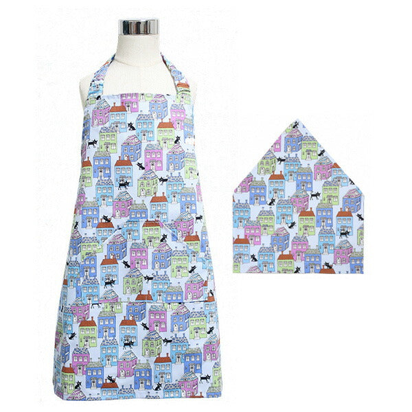 お子様でも、簡単に着脱できる、首から掛けるタイプのキッズエプロンです。三角巾の後ろ側はゴム仕様になっておりますので、簡単にスッポリかぶる事ができます。又、汚れても丸洗いできますので安心です。