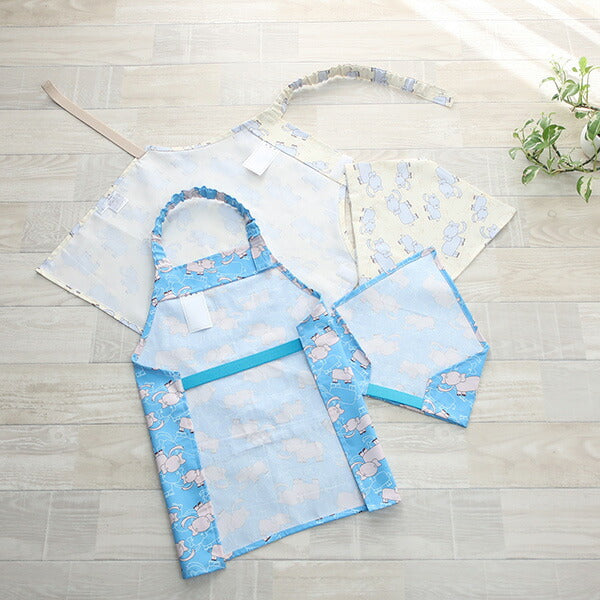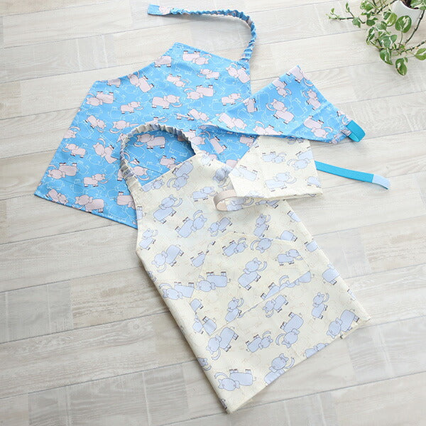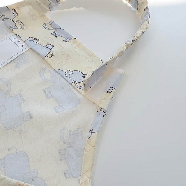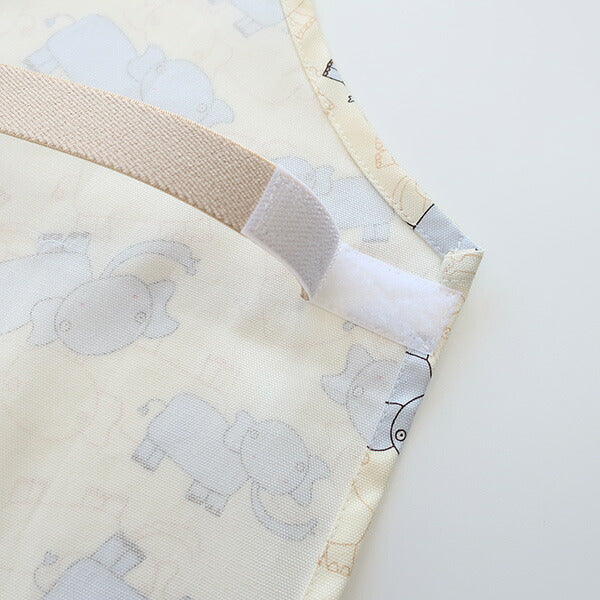 お子様でも、簡単に着脱できる、首から掛けるタイプのキッズエプロンです。三角巾の後ろ側はゴム仕様になっておりますので、簡単にスッポリかぶる事ができます。又、汚れても丸洗いできますので安心です。安心、安全な日本製はもちろん、裁断から縫製、検品、仕上げまで全てフジキにて行っております。