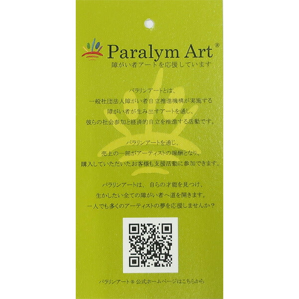 一般社団法人障がい者自立推進機構が実施する障がい者が生み出すアートを通し、彼らの社会参加と経済的自立を推進する活動です。パラリンアートを通じ売上の一部がアーティストの報酬となり購入して頂いたお客様も支援活動に参加できます。工房ハンド所属パラリンアートアーティスト TAKUOさんがデザインしたモチーフを使用しました。