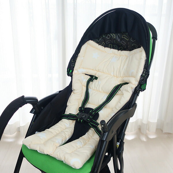 ベビーカーの衝撃から赤ちゃんを守るため柔らかい中ワタを使用しています。汎用性の有るデザインですので安心です。又、綿100%素材の生地を使用していますので、汗っかきに赤ちゃんにも安心。丸洗いが出来ていつも清潔です。安心、安全の日本製はもちろん、裁断から縫製、検品仕上げまで、一貫してフジキにて行っております。
