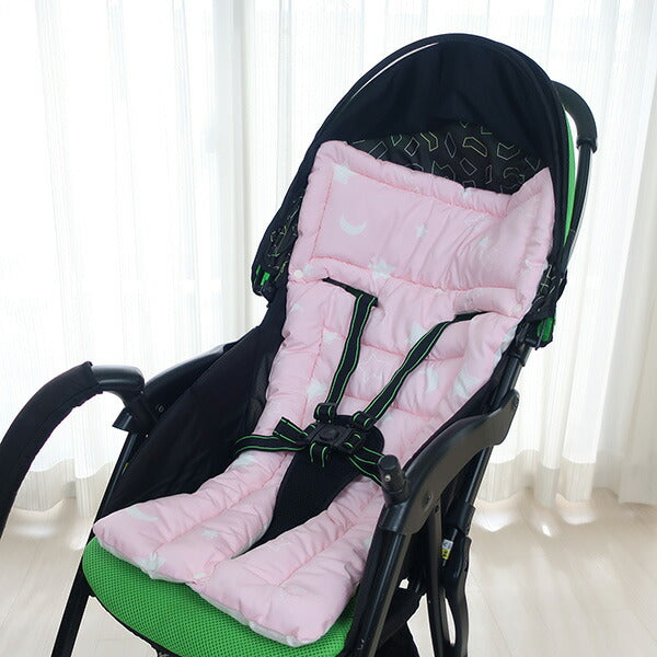 ベビーカーの衝撃から赤ちゃんを守るため柔らかい中ワタを使用しています。汎用性の有るデザインですので安心です。又、綿100%素材の生地を使用していますので、汗っかきに赤ちゃんにも安心。丸洗いが出来ていつも清潔です。安心、安全の日本製はもちろん、裁断から縫製、検品仕上げまで、一貫してフジキにて行っております。