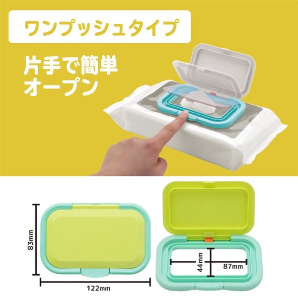 ワンプッシュタイプは使いたいときに指1本でポンッと開くので赤ちゃんのおむつ替えや介護シーンでも大活躍。大人の体拭き用にも対応できるように開口部サイズを大きくとりました。