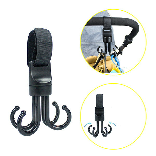 ベビーカーフック 2in1 マルチファンクションフック ブラック 2個セット BabyGo! カバン掛け 荷物フック