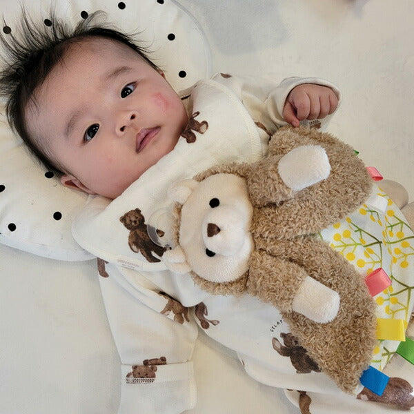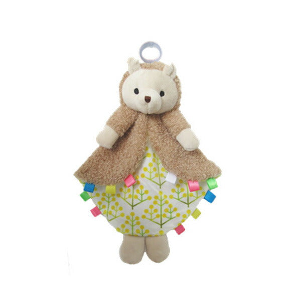 ふわっとかけるとからだに生地がフィットして、転がりにくくなるので、おしゃぶりをコントロールしやすくなります。赤ちゃんが大好きなタグを付け、より触りたくなる仕掛けを追加しました。やわらかく、なめらかな肌触りで思わず、ぎゅっと抱きしめたくなる生地を使用しています。おしゃぶりを卒業した後も、アタッチメント部分を取り外し、ぬいぐるみとしてご使用いただけます。
