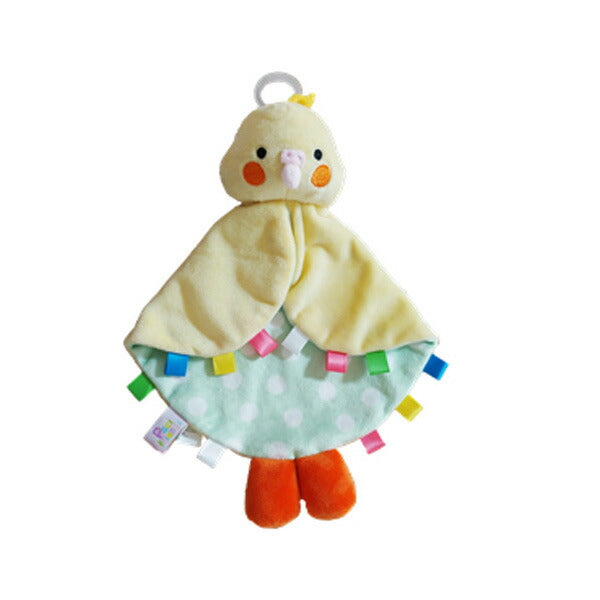 ふわっとかけるとからだに生地がフィットして、転がりにくくなるので、おしゃぶりをコントロールしやすくなります。赤ちゃんが大好きなタグを付け、より触りたくなる仕掛けを追加しました。やわらかく、なめらかな肌触りで思わず、ぎゅっと抱きしめたくなる生地を使用しています。おしゃぶりを卒業した後も、アタッチメント部分を取り外し、ぬいぐるみとしてご使用いただけます。