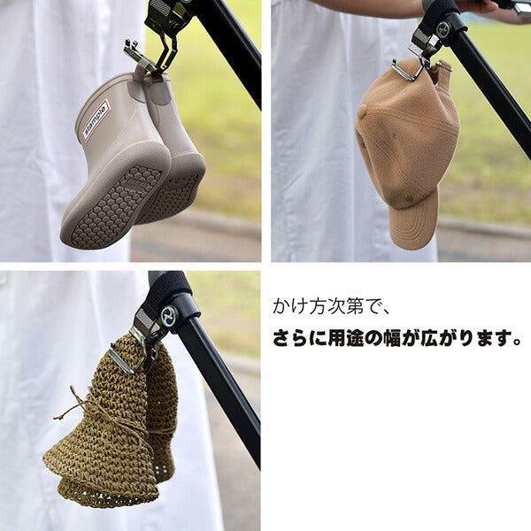 美しいフォルムと利便性を兼ね備えたベビーカーフック。ヘッド部分が360度回転するので、どんな角度からもバッグをスッとかけられます。細部にまで気を抜かないこだわりママも納得の一品。スタイリッシュなお出かけを実現します。
