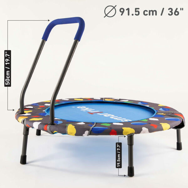 ステージ2(12カ月~):プラクティス。ハンドルバー付きのトランポリンに変身!子供たちは楽しく安全な環境でジャンプしながら、総合的な運動スキル、スキルの一部としてバランス能力を高めることができます。
