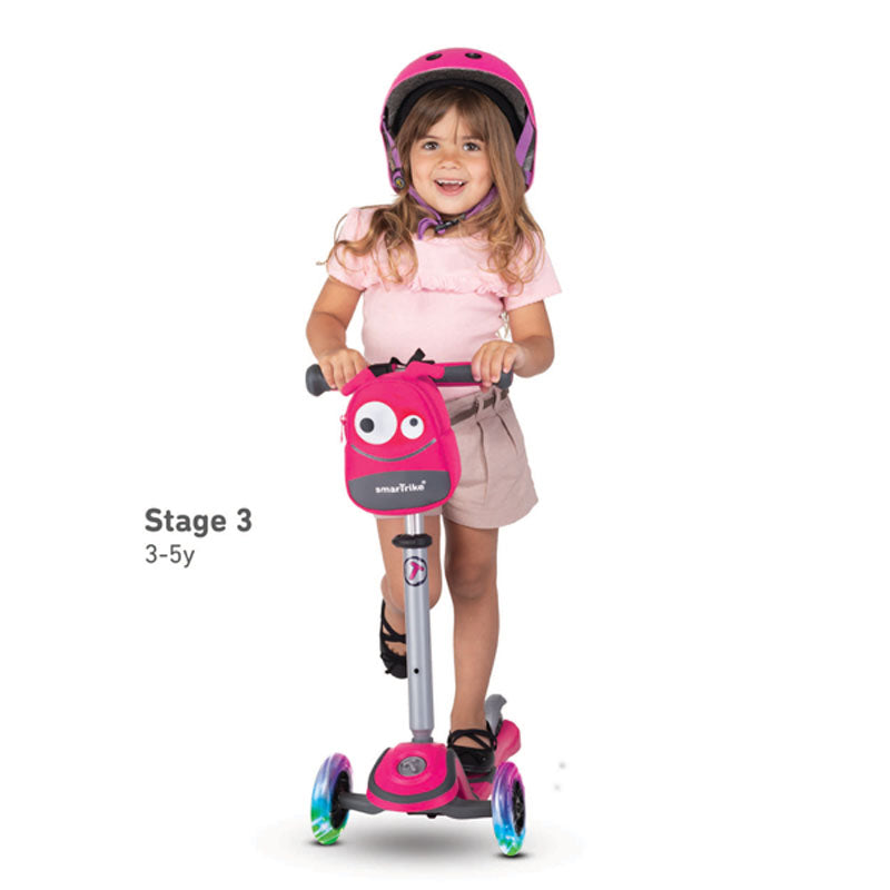 ステージ3(3~5歳):フリースタイルライディング。 Tロックを回してチルト機構を有効にすると、ライダーは車体を傾けてターンしたりフリースタイルのスクーティングを最大限に活用できます。