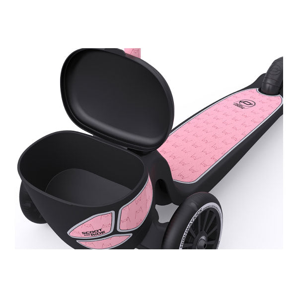 フロントにはお気に入りのぬいぐるみやおもちゃを入れられる収納ボックス付き。フタ付きなので走行中に飛び出してしまうことがなく安心です。ハンドル下部にはリフレクター搭載で周囲が暗くなると白く光ります。スチールには犬、ローズには猫の可愛いイラストが散りばめられていて、スタイリッシュな中にも愛らしさのあるデザインです。ハンドルを切らずに体重移動で曲がる仕組みで、バランス感覚や体の使い方を養います。前輪2輪の3輪タイプなので安定性が高く、スクーターが初めてのお子さまでも安心してご使用頂けます。