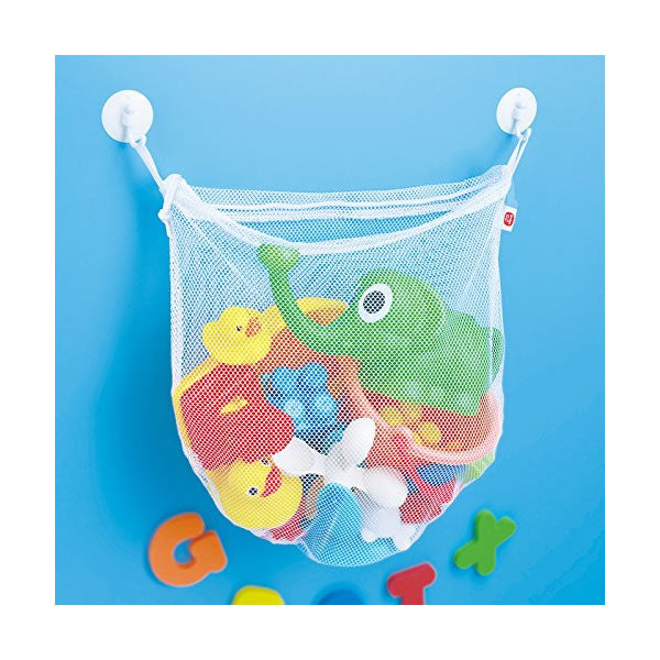 お風呂場や水遊び、お砂場遊びのおもちゃなどを収納するネットです。口が大きく開くので、大きめのおもちゃでも出し入れしやすく、持ち運びに便利な巾着型です。水切れの良いメッシュ生地を使用しているので、お風呂で遊んだおもちゃを清潔に収納しておくことができます。「第10回 キッズデザイン賞」を受賞しました。