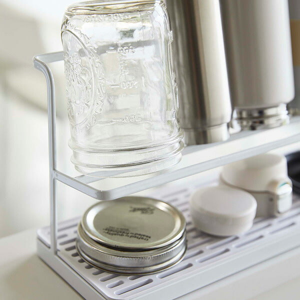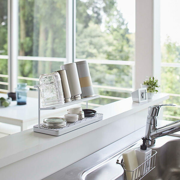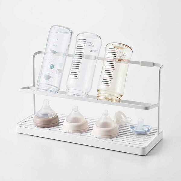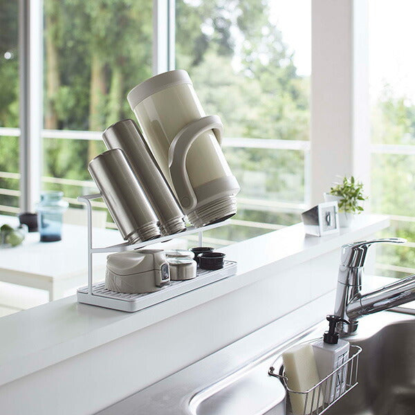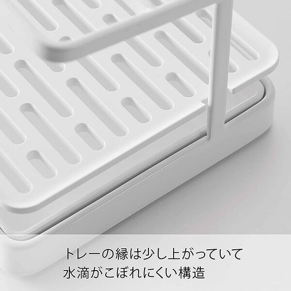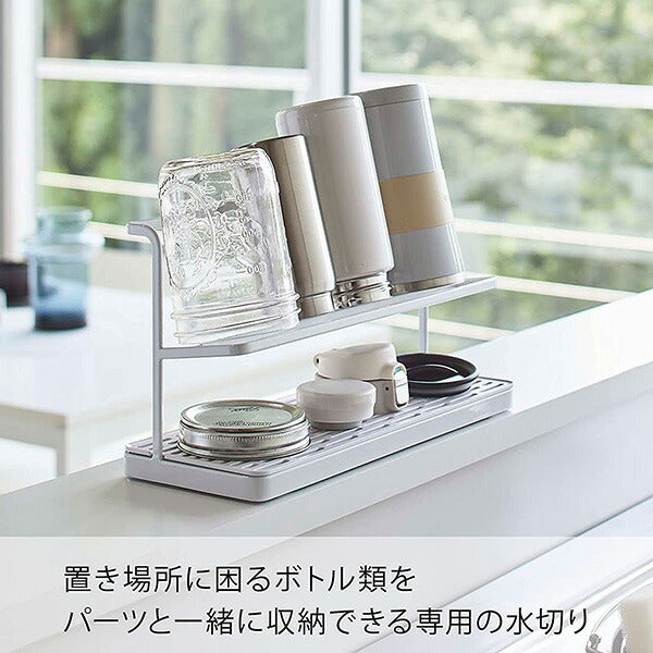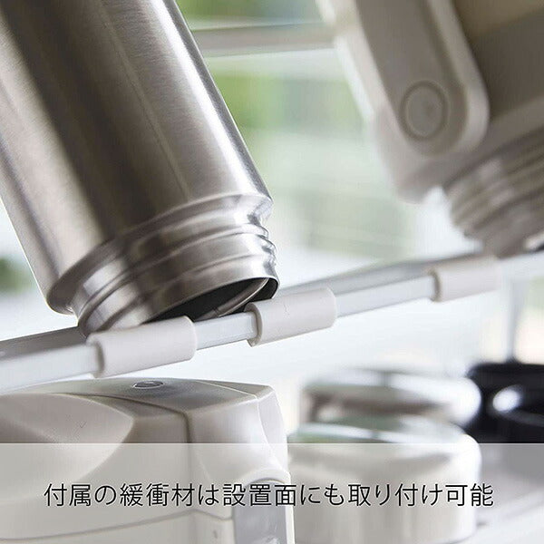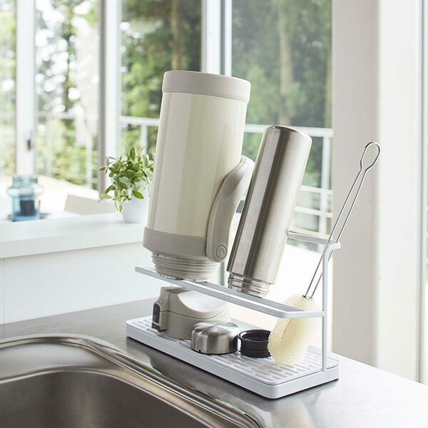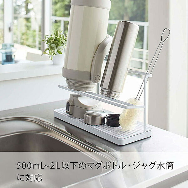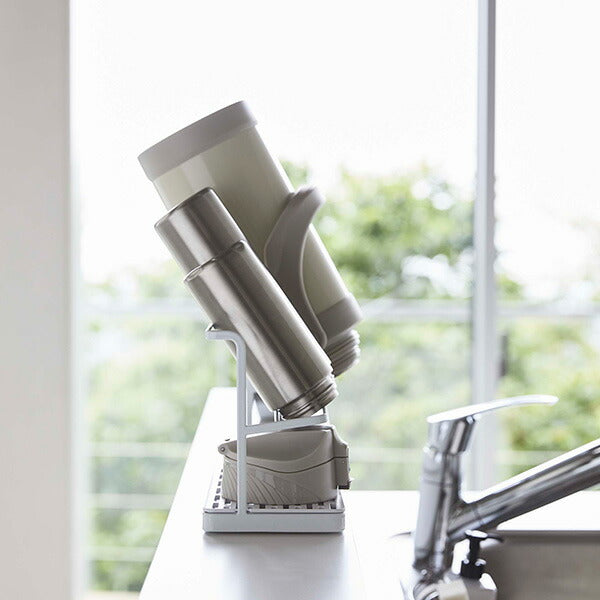 サッと立てかけるだけ!マグボトルからジャグボトルまで干せる大容量ボトルスタンド。置き場所に困る2リットルサイズのジャグボトルが2個収納可能。トレー部分は本体左右の溝にしっかり収まります。取り外しも簡単!トレーの縁は水滴などがこぼれにくい構造です。ボトルと本体の接地面が気になる場合は付属の緩衝材が取り付け可能です。本体とトレー、容器は分解可能だから洗って清潔に保てます。