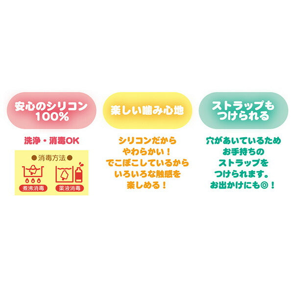 シリコン100%だから、やわらかく程よい弾力のある歯がためです。