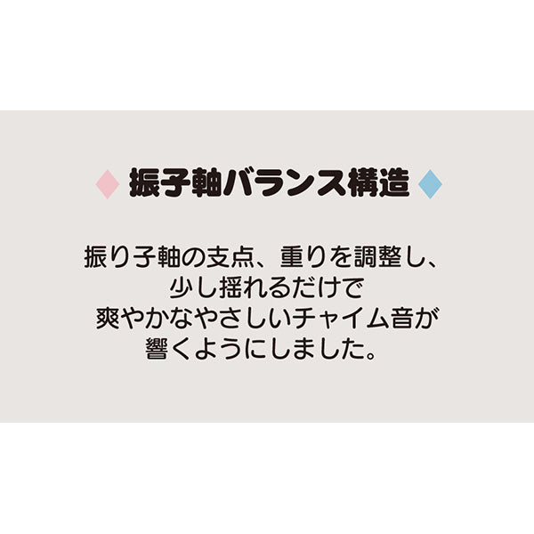 振り子軸の支点、重りを調整し、少し揺れるだけで華やかなチャイム音が響くようにしました。
