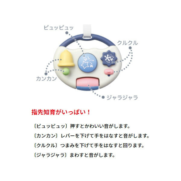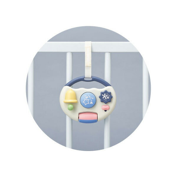 押す、回す、つまむなどの指先遊びがついて、おでかけにぴったりサイズのミニボードです!ベビーカーやベビーベッドなどに簡単に取り付けられます!抗菌加工でおでかけも安心!