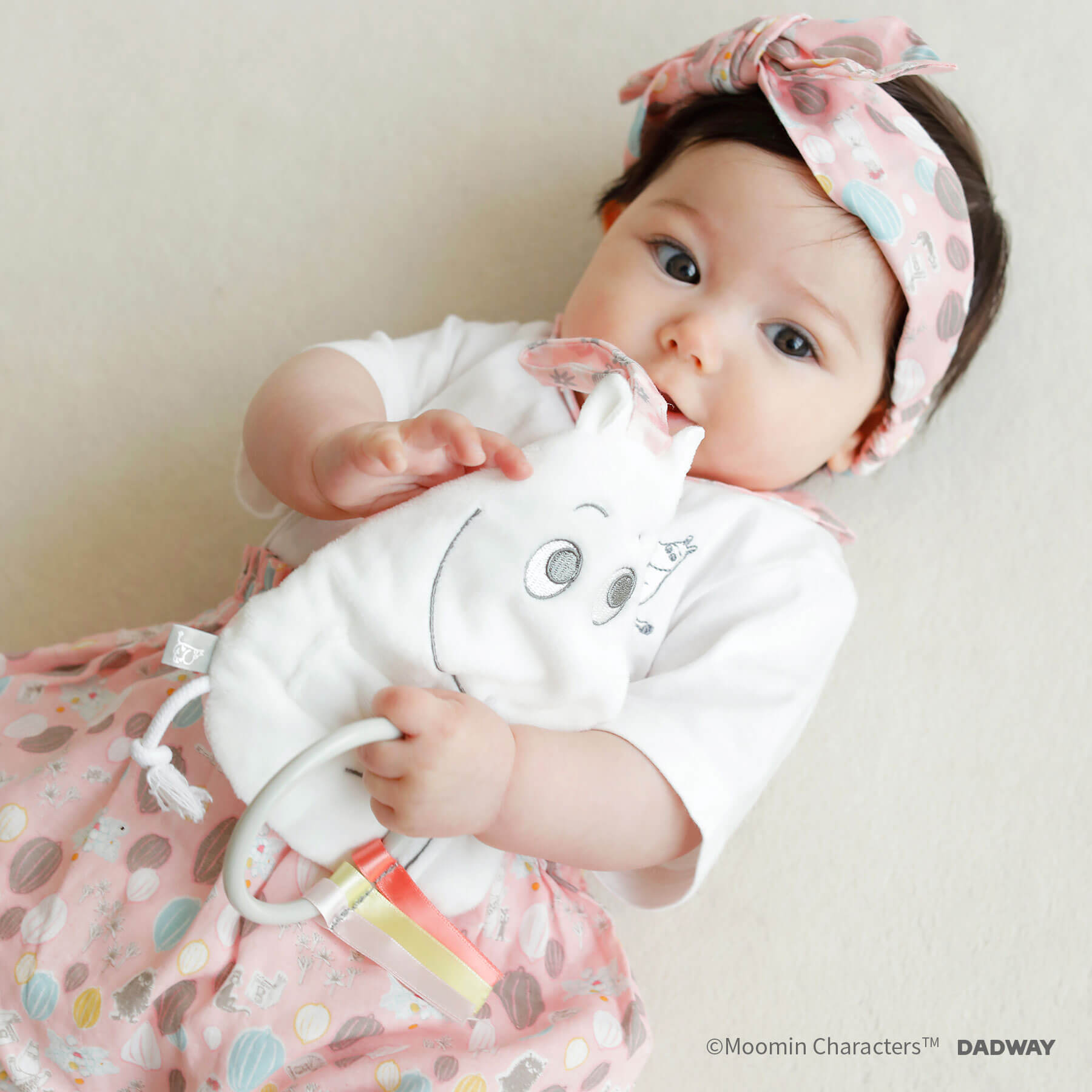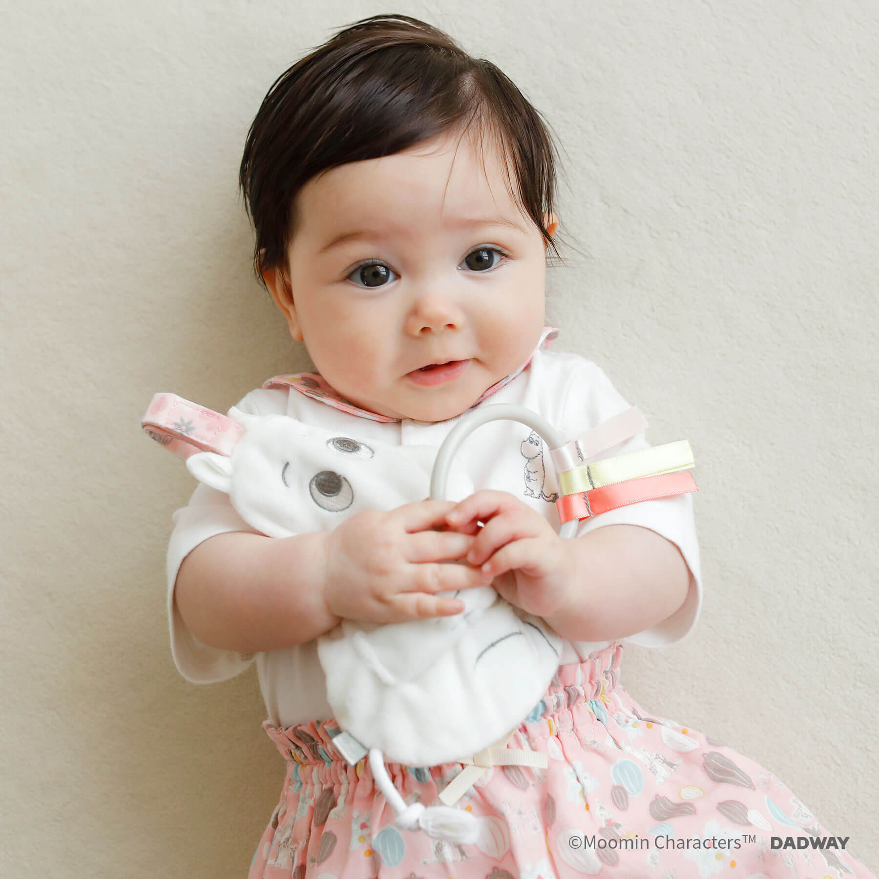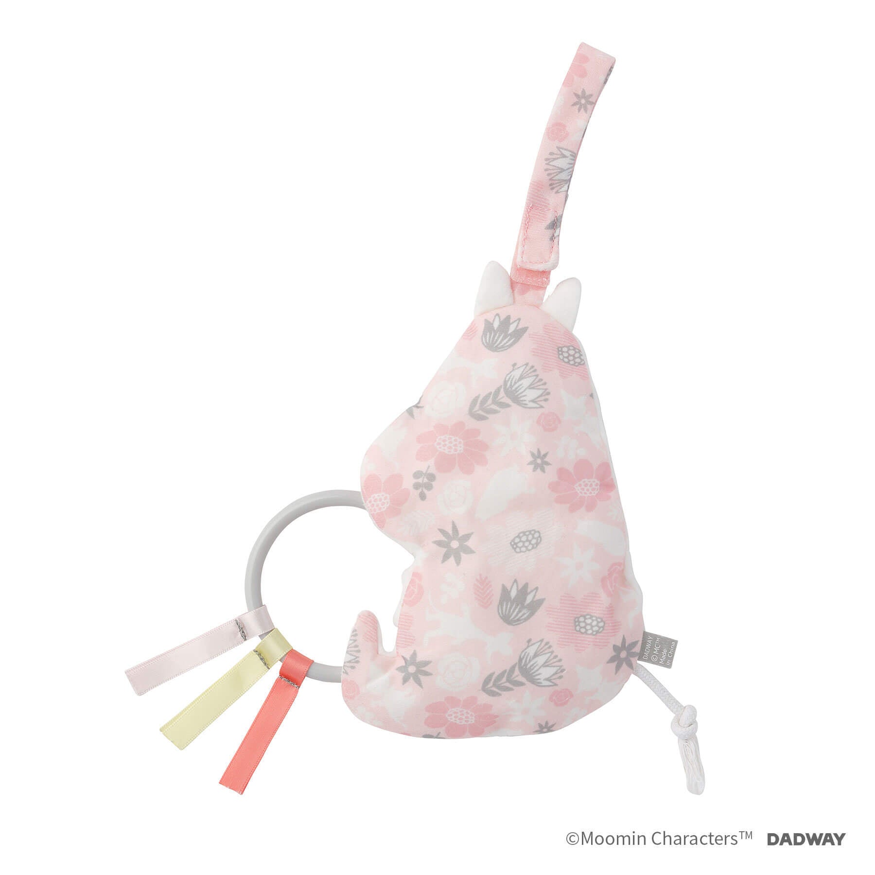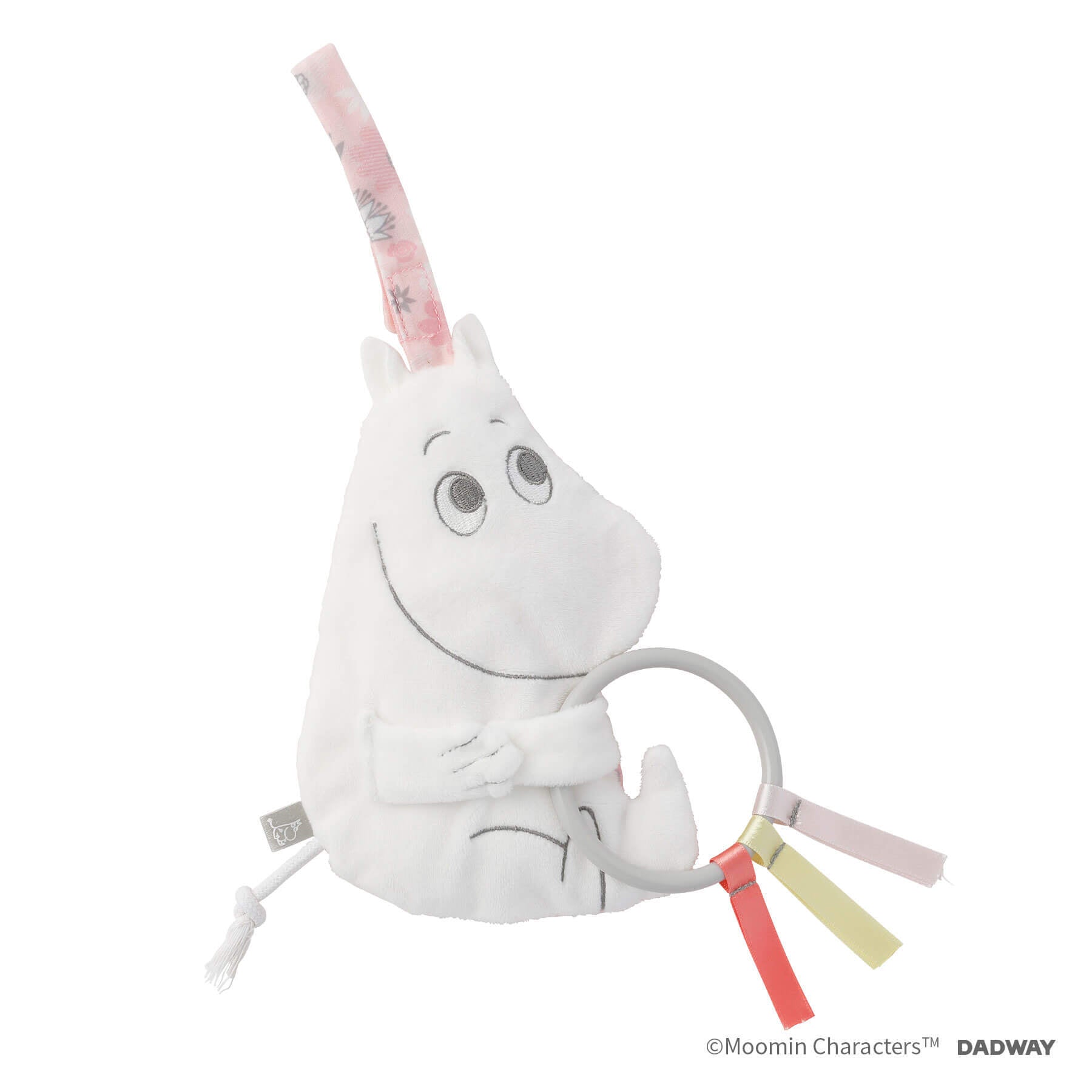 ムーミンをさわってカシャカシャ。あかちゃんが喜ぶ音。 ベビーカーやバックに取り付けられるムーミンの総柄ベルト付き,プラスチックのパーツやリボン、紐のしっぽで様々な質感を楽しめます! 手洗い可能で衛生的に使えます。