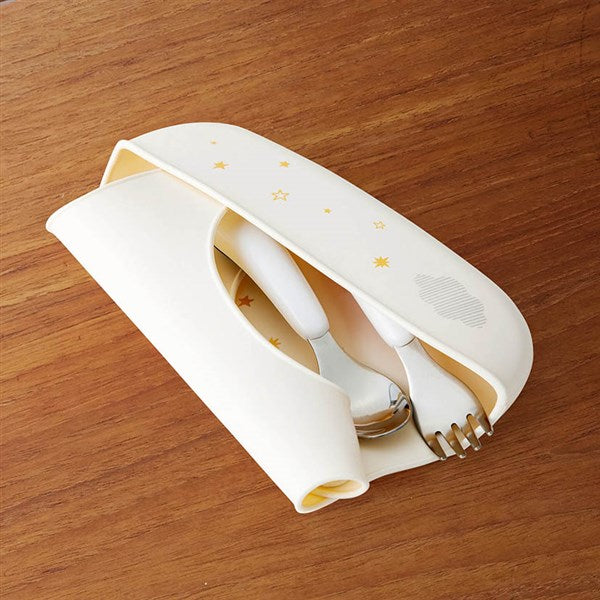 さっと水洗いでき、お手入れ簡単なシリコーン製ビブ。立体ポケットが食べこぼしをしっかりキャッチ!カトラリーを入れてコンパクトに収納可能。お子さまに合わせて首回りのサイズ調整可能です。クリアボックス入りでギフトにもぴったり。